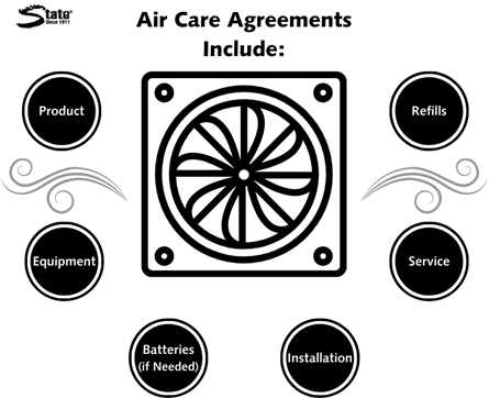 An air care agreement supplies your business with fragrance dispensing units, refills, installation, and service for a flat, monthly fee.
