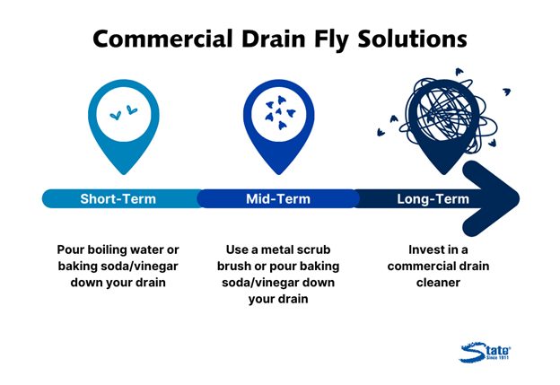 This action is not usually necessary with minor drain fly problems. However, commercial drain cleaners get to the root of the problem and prevent future buildup that could attract drain flies later. In this way, it can also be used as preventative maintenance even after you get rid of drain flies in your facility.
