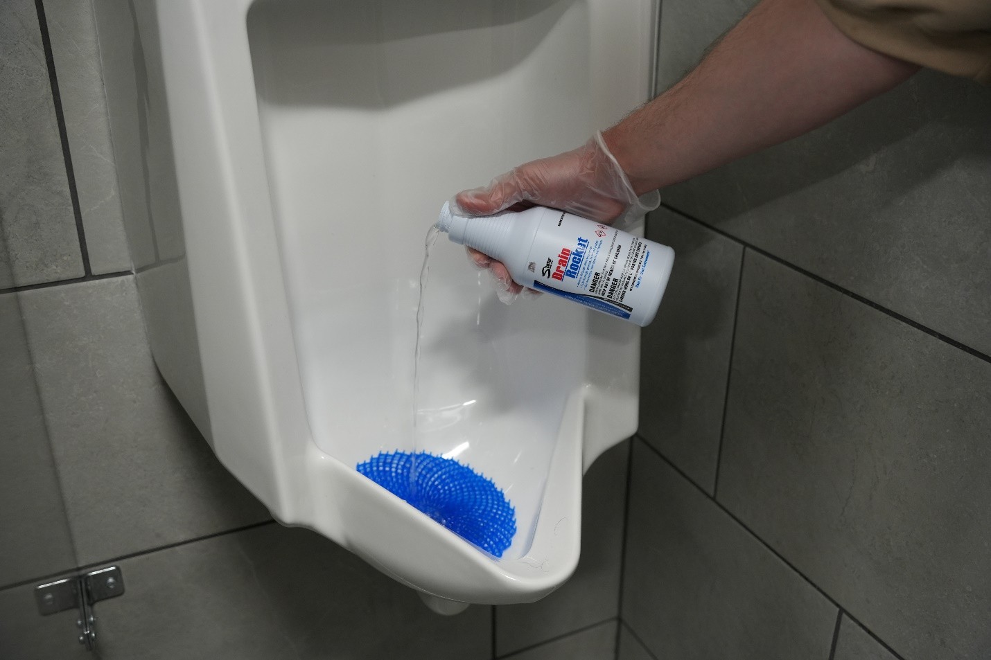 Urinal drain cleaners use a chemical or biological compound to cut through urinal buildup and keep the system running smoothly. When used regularly, drain cleaners keep buildup under control and prevent clogs from occurring.