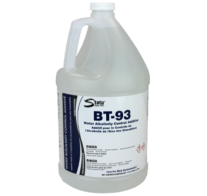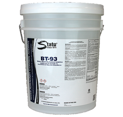 BT-93™ should be used only under the supervision of a trained State Chemical Account Manager. Add BT-93 as needed to maintain boiler alkalinity at recommended values, typically 200 – 300 ppm as hydrated alkalinity. Recommended values for alkalinity will vary with the treatment program. The amount of BT-93 needed to maintain the required level of Hydroxide alkalinity will vary with local water conditions and boiler operation.