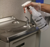 For water hardness up to 300 ppm add 2 ounces per gallon (16 milliliters per liter) of water (1:64) to disinfect hard, non porous surfaces [Glass, metal, stainless steel, glazed porcelain, glazed ceramic, granite, marble, plastic (such as polystyrene or polypropylene), sealed limestone, sealed slate, sealed stone, sealed terra cotta, sealed terrazzo, chrome and vinyl]. Apply solution with a cloth, mop, sponge, hand pump trigger sprayer or other mechanical sprayer devices. Treated surfaces must remain wet for 10 minutes. Let air dry. Prepare a fresh solution for each use. This product is effective in hard water up to 300 ppm hardness. Remove gross filth or heavy soil. For heavily soiled areas, a pre-cleaning step is required.