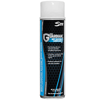 Guardian™ Dry Silicone Lubricant delivers fast-drying lubrication with a clear, non-staining, waterproof film that protects against rust and corrosion. Its non-stick coating prevents buildup from snow, grass, sawdust, and more, while working in temperatures from -35°F to 300°F on metal, wood, rubber, plastic, leather, canvas, and chrome.