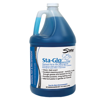 Sta-Glo™ Professional Pot & Pan Detergent is a super-concentrated, high-sudsing formula that cuts through grease, oils, and baked-on food soils with ease. It leaves surfaces squeaky clean while lasting longer in the sink, reducing change-outs. Powerful on tough messes yet gentle enough for both dishware and hands, it delivers dependable results every time.