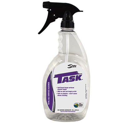 State® Task™ is a versatile all-purpose cleaner formulated for use on most water-washable surfaces, providing reliable cleaning without causing damage. Its balanced formula effectively removes dirt, grime, and smudges while being safe for plastics and other sensitive materials. Task™ delivers a streak-free finish, even on glass, leaving surfaces looking fresh, polished, and professional.