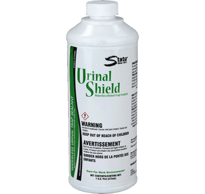 Urinal Shield™ is a waterless-urinal trap sealant that helps protect the investment in your waterless urinals by forming a powerful barrier against unpleasant urine odors. Simply add 3–4 ounces to the urinal cartridge to maintain a clean, odor-free restroom environment without affecting the urinal’s performance.